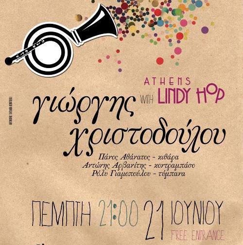 Για μιάμιση περίπου ώρα ο Γιώργης και οι τριμελής του μπάντα παρουσιάζουν το πιο χρωματιστό και ταξιδιάρικο live της πόλης με ερμηνείες στα ελληνικά, ισπανικά, καταλανικά, γαλλικά, αγγλικά και ιταλικά… σταθερή συνταγή για να ταξιδέψουμε σε μεσογειακά τοπία και να διασκεδάσουμε με γοητευτικές μελωδίες. Καλεσμένοι για χορό φυσικά, οι φίλοι και συνεργάτες του τα τελευταία χρόνια Athens Lindy Hop, η ομάδα που έφερε την αισθητική και την τρέλα του swing κινήματος στην πόλη!
